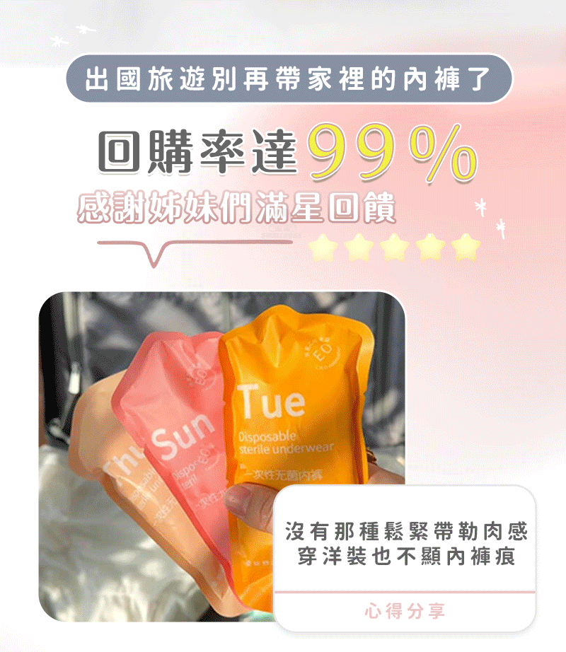 4分鐘前純棉無菌日拋內褲 - 【四套𝟒𝟎件】團購嚴選,數量有限NT$999