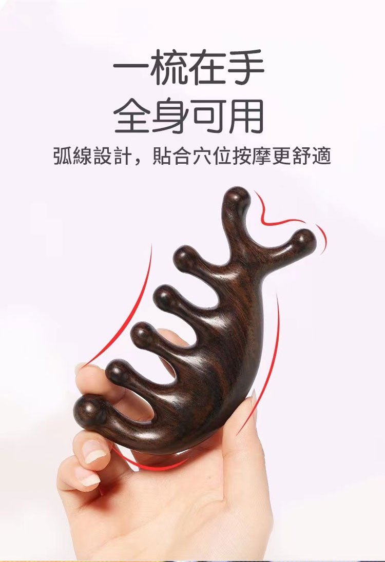 2分鐘前天然檀木美容經絡按摩梳 ◀頭臉按摩◀疏通經絡◀刮痧排毒 按摩穴位促進排毒,面部提拉緊緻 - 【緩解頭痛,按出健康】5入組HK$346