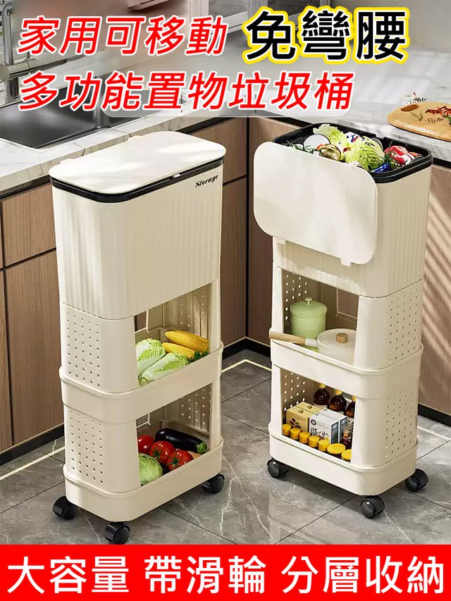 11分鐘前【不彎腰】家用可移動多功能置物垃圾桶 - 【超殺*贈20垃圾袋】1入組$279